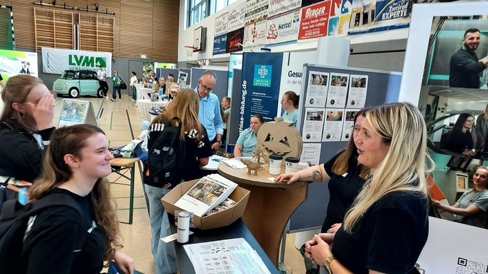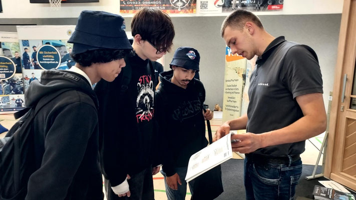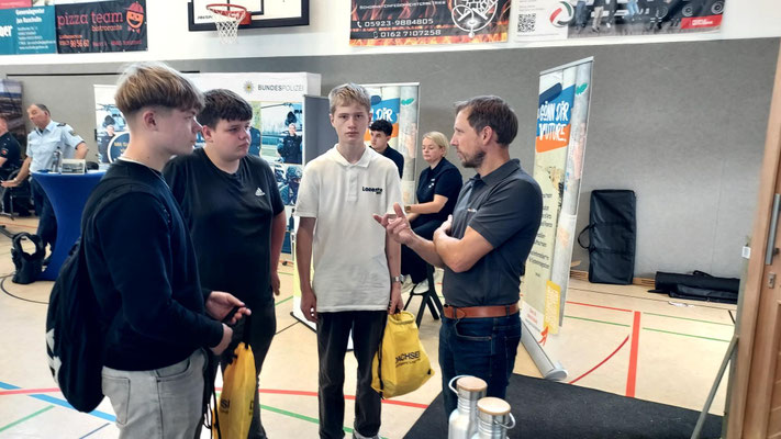 Auch in diesem Jahr haben unsere Schülerinnen und Schüler am Obergrafschafter Berufserkundungstag teilgenommen. Gemeinsam mit rund 900 Jugendlichen aus allen Obergrafschafter Schulen nutzten sie die Gelegenheit, sich an zahlreichen Infoständen über verschiedene Ausbildungsberufe und Unternehmen der Region zu informieren. Die Veranstaltung, organisiert von der Samtgemeinde Schüttorf in Kooperation mit der Stadt Bad Bentheim, bot unseren Jugendlichen wertvolle Einblicke in mögliche berufliche Perspektiven und erste Kontakte zu potenziellen Ausbildungsbetrieben.