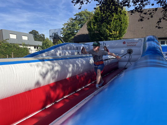 Am vergangenen Sonntag fand in Gildehaus das Dorffest statt, an dem auch wir von der Grund- und Hauptschule teilgenommen haben. Für sichtlich Spaß sorgte neben der Schmink- und Tattoostation auch die Bungee-Run-Anlage, an der nicht nur die Kleinsten Besucher das Duell gegeneinander suchten. Viele Gäste kamen auch aufgrund des Flohmarktes, der von unseren Schülerinnen und Schülern sowie deren Eltern angeboten wurde, auf unseren Schulhof. Am Kaffee- und Kuchenstand, bei den herrlich schmeckenden kurdischen Spezialitäten oder auch am SV-Stand bei Zuckerwatte und Popcorn war bestimmt für jeden etwas Leckeres dabei.