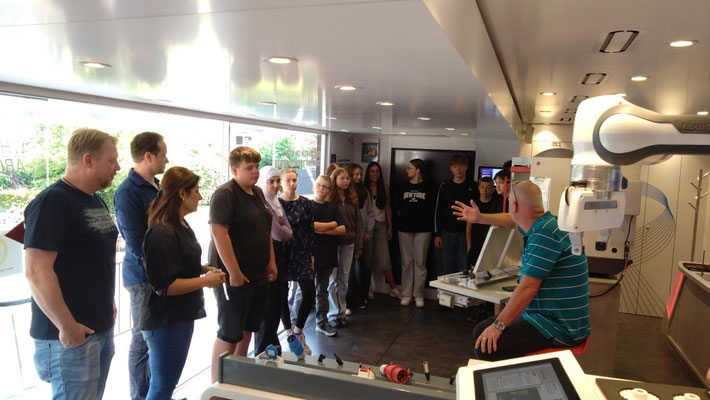 Das Info-Mobil der Metall- und Elektrobranche machte für zwei Tage auf dem Schulhof Station.