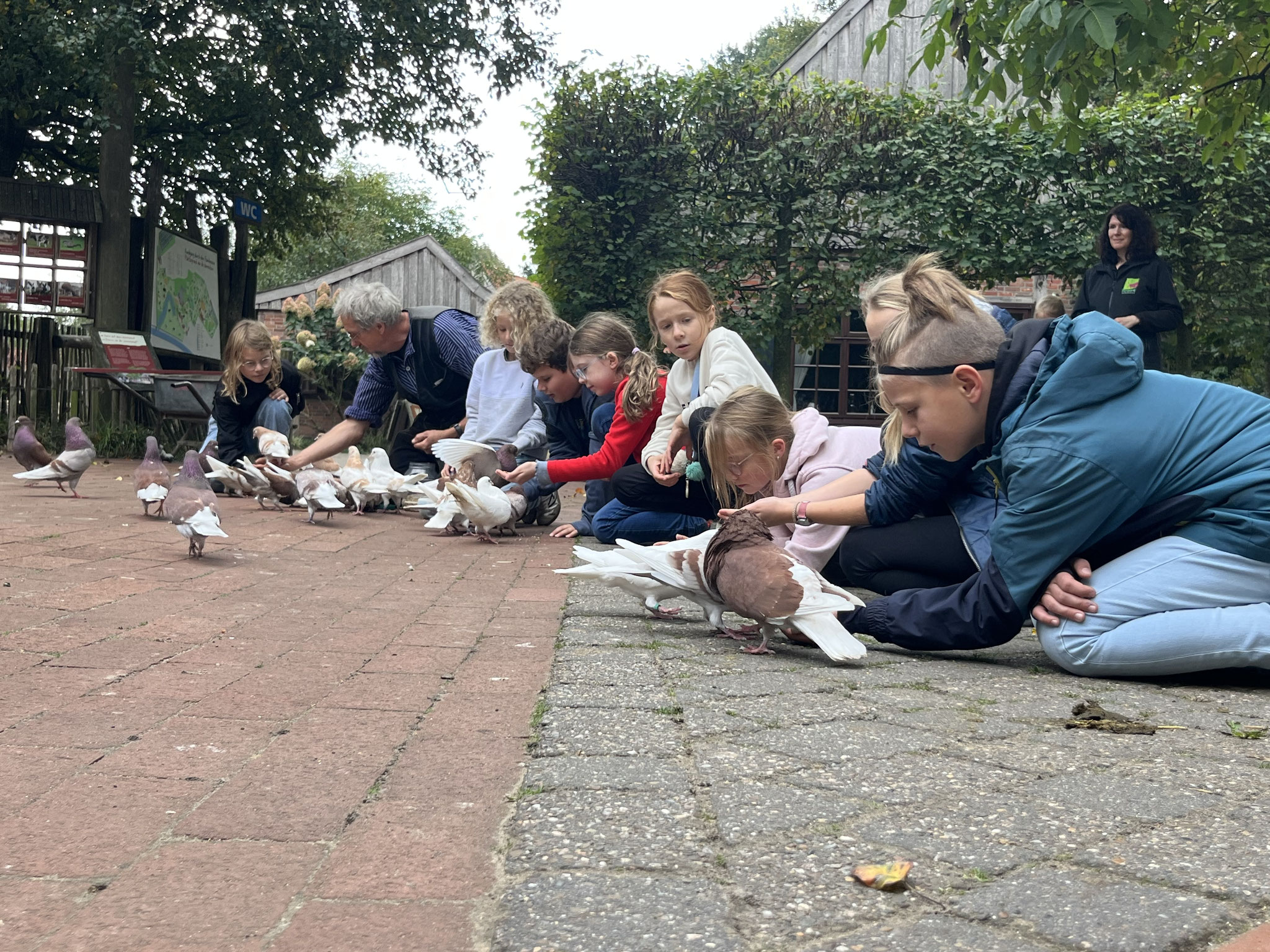 Die Schülerinnen und Schüler lernten die neu in den Tierpark eingezogene Seehunddame kennen. Auch das jüngst eröffnete Wolfsgehege war für viele ein noch unbekanntes Highlight. Schön war auch, dass sich Bauer Jan Zeit für uns genommen hat und mit uns die Tauben fütterte. Viele andere Tiere erfreuten sich natürlich ebenso an den Leckereien der Schüler.